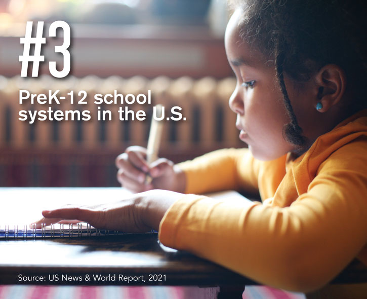 Our exceptional PreK-12 school system is ranked #3 in the country. Beyond our own well-prepared high school grads, our highly ranked colleges and universities also attract more than 12,000 international students from across the country and around the globe. And as early as kindergarten, we’re already preparing your future programmers by integrating coding into all our K-12 classrooms.