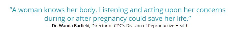 The goal is to encourage women to speak up during pregnancy, at birth and during the postpartum year about any concerns, and to encourage providers to listen actively to a women’s concerns. A woman knows her body best and how she feels.