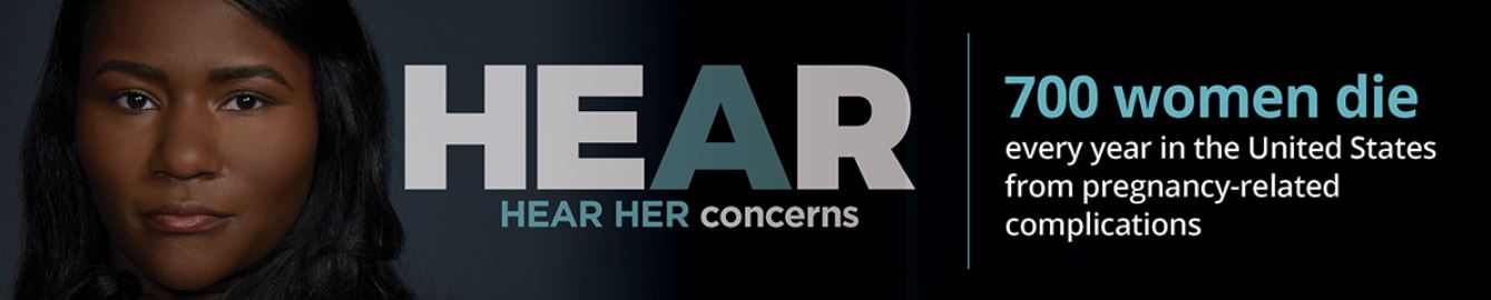 CDC's Hear Her Campaign seeks to raise awareness of potentially life-threatening warning signs during and after pregnancy and improve communication between patients and their healthcare providers. It helps increase awareness of serious pregnancy-related complications and their warning signs, empowers women to speak up and raise concerns, encourages women’s support systems to engage in important conversations with her and provides tools for women and providers to better engage in life-saving conversations.