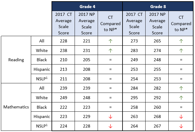 NAEP 2017 Student Group Results: Comparison of Connecticut to National Public (NP)