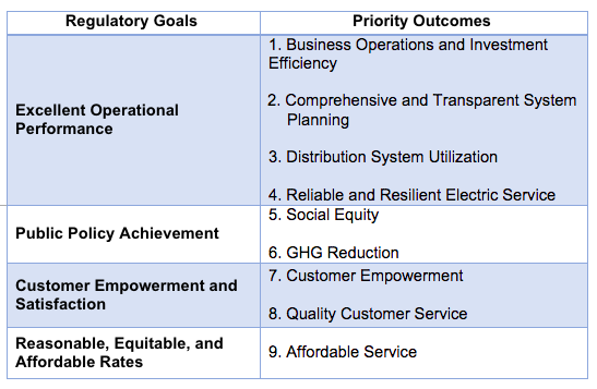 The below table provides a summary of the regulatory goals and priority outcomes adopted in the decision.
